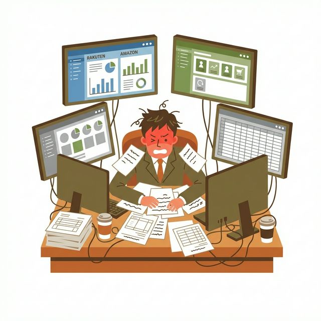 朝イチでFAXの束をめくり、Excelに手入力。 昼にはECモールの管理画面を3つ開いて、注文をコピペ。 夕方には得意先からEDIデータが届き、別のシステムで取り込む——