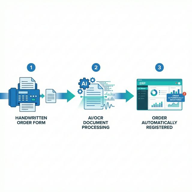 - 📠 FAX注文 → OCRが自動読取 → 受注データとしてERPに登録