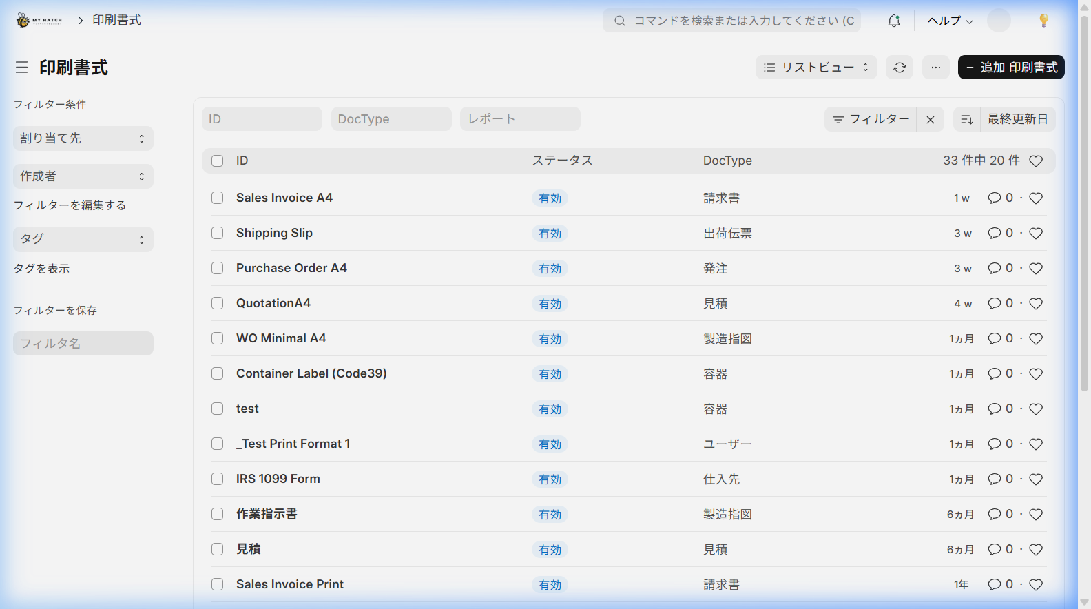 | 帳票 | 対象DocType | 主な用途 |