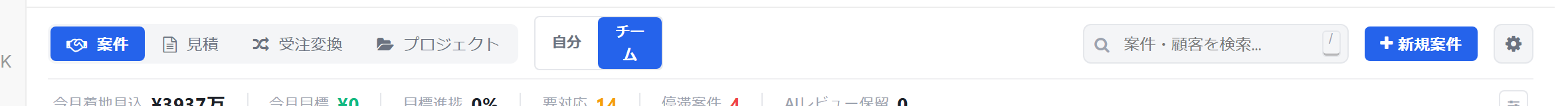 画面上部でスコープを切り替えることで、同じ画面の見え方を 営業運用モード と プロジェクト管理モード に切り替えられます。